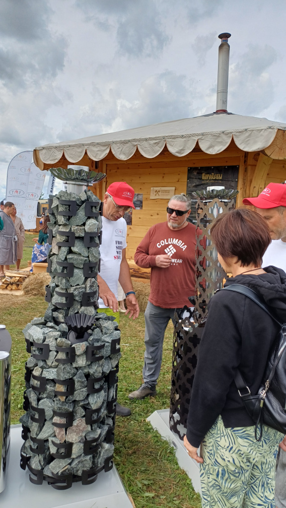 Наша баня стала настоящим центром притяжения: аромат кедрового сруба от наших партнеров Сорокин & Угренинов привлекал любителей попариться несмотря на дождь и холод. Особое внимание привлекла особенная банная печь TMF Джоконда, которая была представлена впервые.